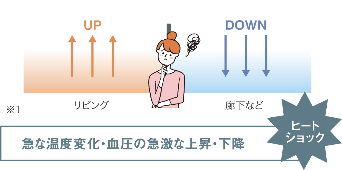 部屋間の気温差が大きくなる冬場などでも、“急激な温度変化で血圧が変動する”リスクを低減します。