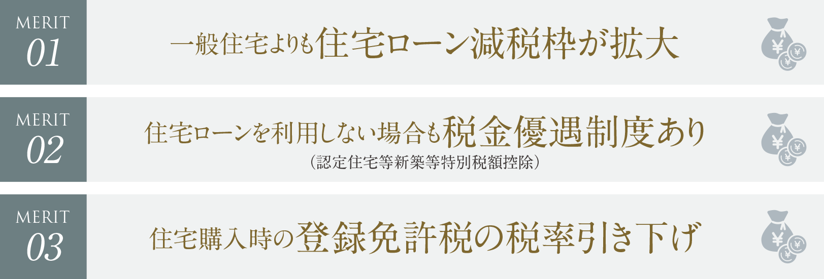 「ZEH」等の基準に適合物件を購入した場合、借入金利が引下げられます。