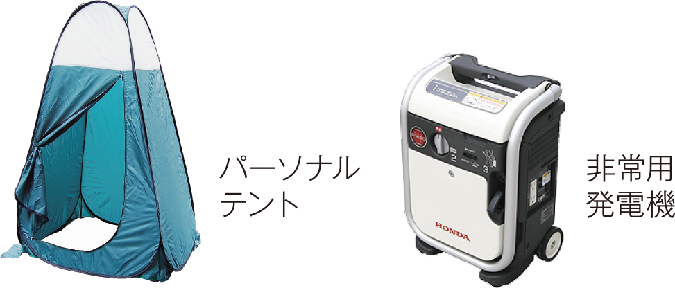 水や電気などのライフラインが断絶した場合も想定した、トータルな防災システムの導入と確立があってはじめて、緊急時の不安や不便が少しでも解消されると思い至りました。防災備蓄庫の設置はそのひとつ。発電機やパーソナルテントなどを常備し、万一の災害時に備えます。